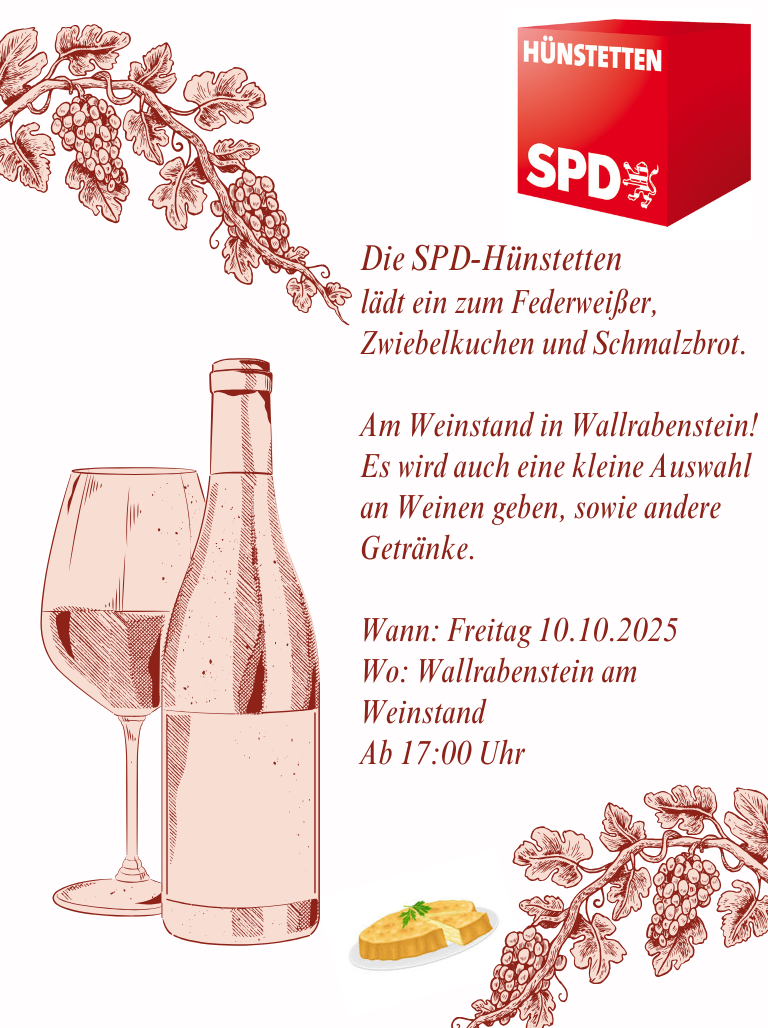 Die SPD-Hünstetten lädt ein zum leckeren Federweißer!